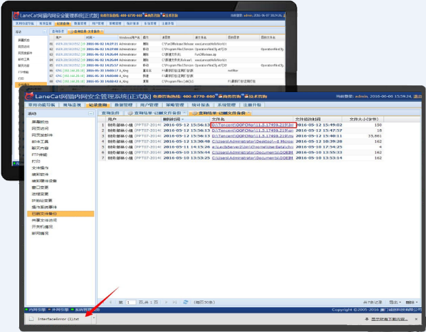13、 共享文件(jiàn)訪問(wèn)監控:可監控到用戶對局域網內(nèi)共享文件(jiàn)的訪問(wèn),包括訪問(wèn)的時間,計(jì)算機,賬戶名,所作操作(讀(dú)文件(jiàn)、寫文件(jiàn)、删除、重命名等),源目錄和目的目錄,源文件(jiàn)和目的文件(jiàn)。